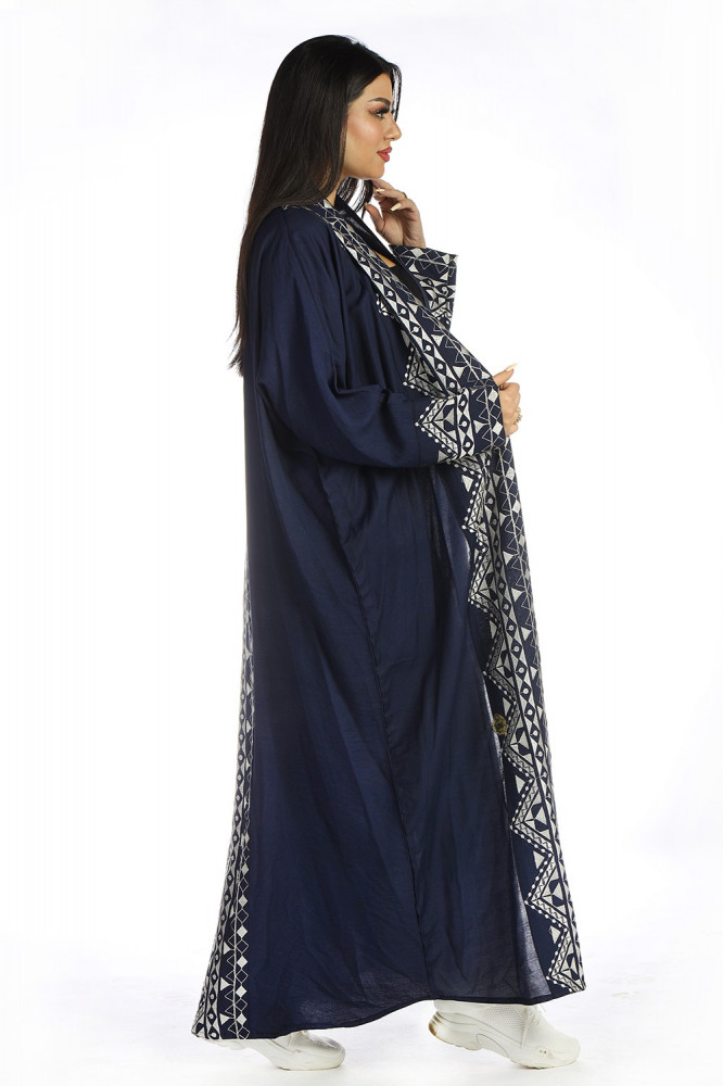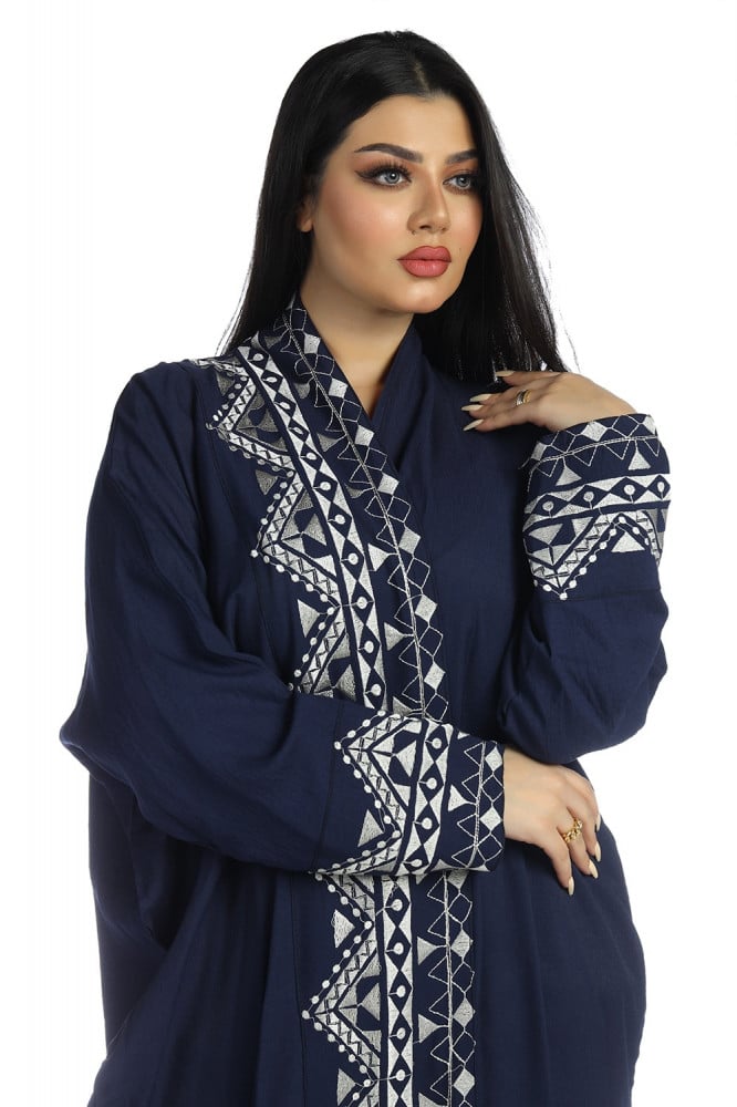 - تم تزويد العباية بتطريز أبيض في الأمام والخلف والكم، والذي أضاف اللمسة المميزة والفريدة من نوعها للعباية.