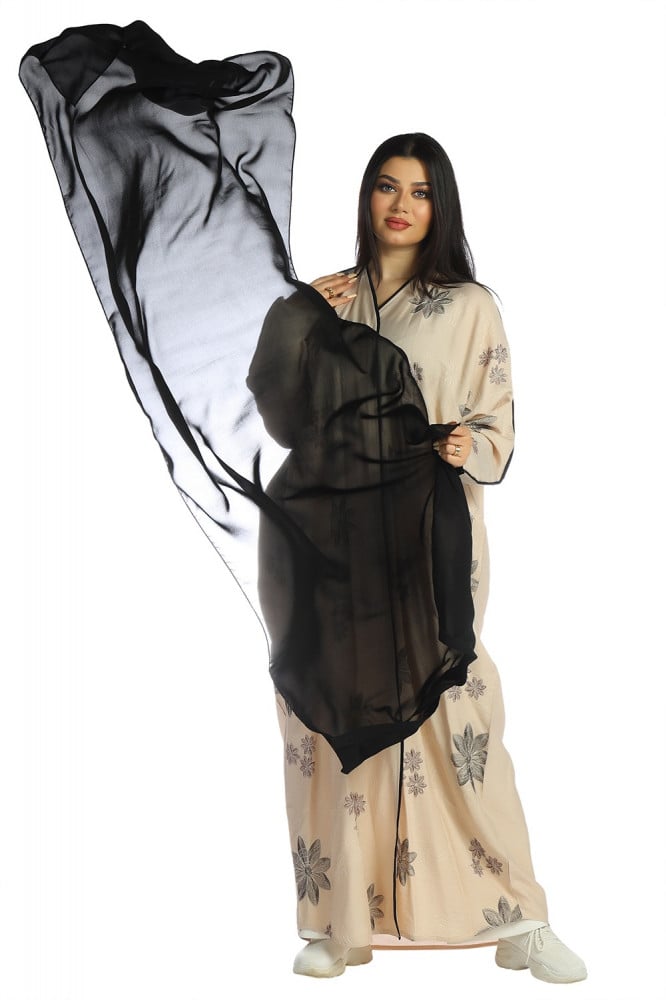 - تم تزويد العباية بتطريز كامل في الأمام، والذي أضاف اللمسة المميزة والفريدة من نوعها للعباية.