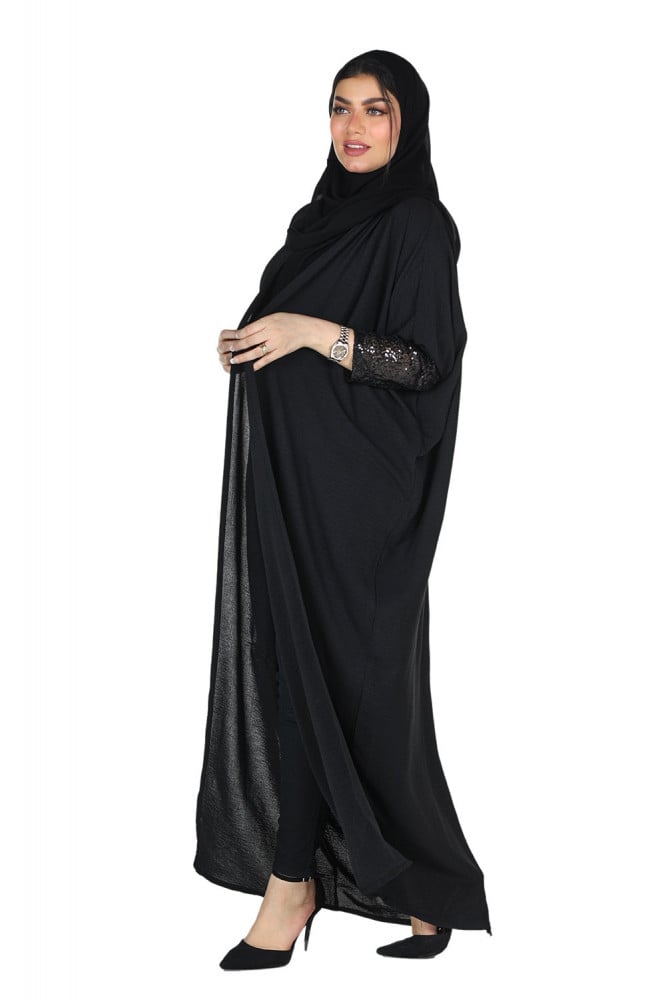 مواصفات عباية فراشة سوداء منسوجة من قماش الكريب الطايح