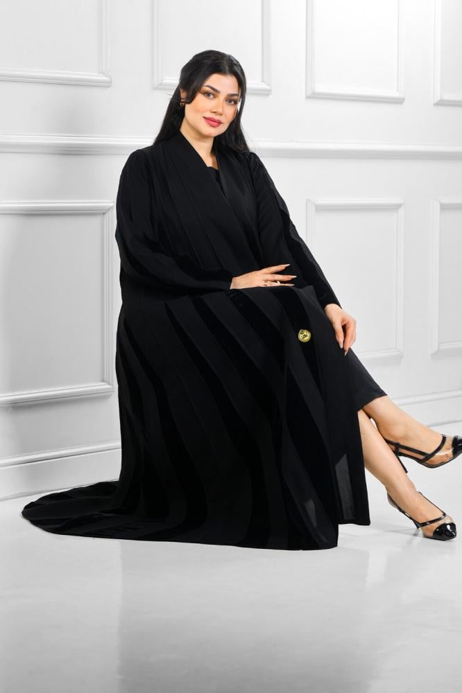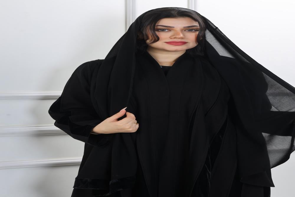 عباية شتوية منسوجة من قماش الكريب الفاخر و المخمل الناعم مع طرحه مجانا
