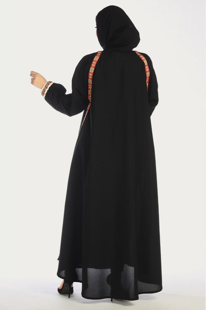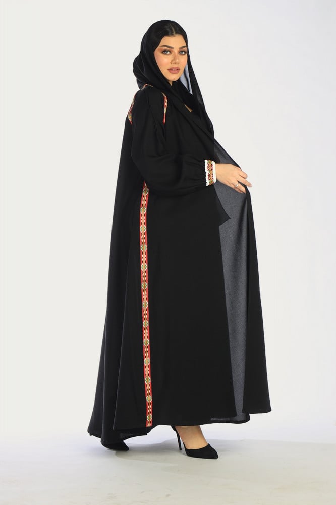 - يجمع لون العباية الأسود بين الكلاسيكية والأناقة، مما يجعلها قطعة أساسية في خزانة ملابسك.