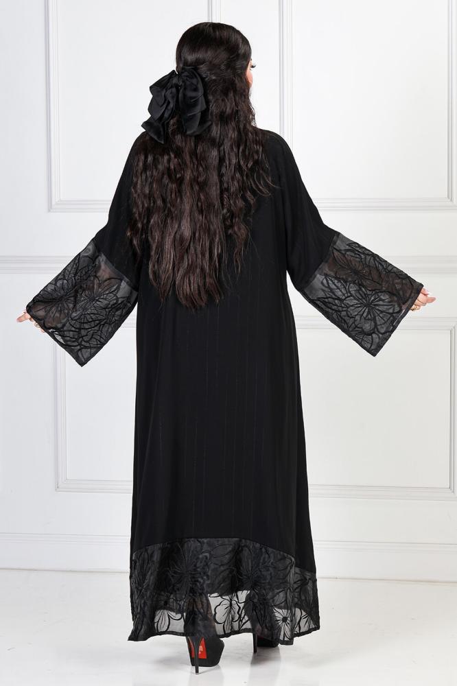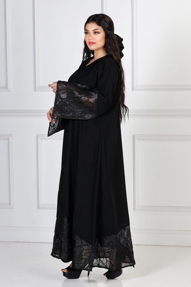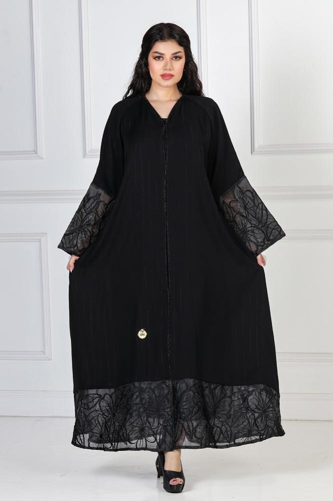 كل تلك المواصفات تتمتع بها أفضل عباية نصف كلوش منسوجة من قماش الكريب المقلم بالإضافة لوجود تدخيله اورجانزا في الكم والأسفل من متجر عبايات روزا الذي يوفر أفضل تشكيلة عبايات فاخرة باحدث التصميمات وبجودة عالية مميزة.