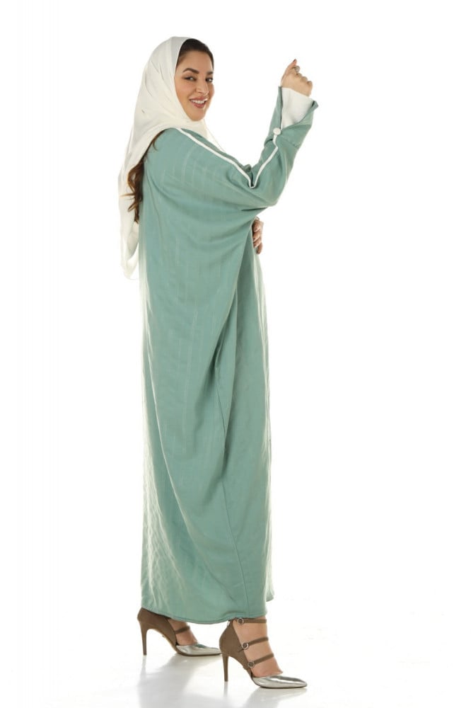 - لا تحتوي على حزام على الخصر لكنها مصممة بتصميم عصري مميز وأنيق ليبرز جمال المرأة السعودية.