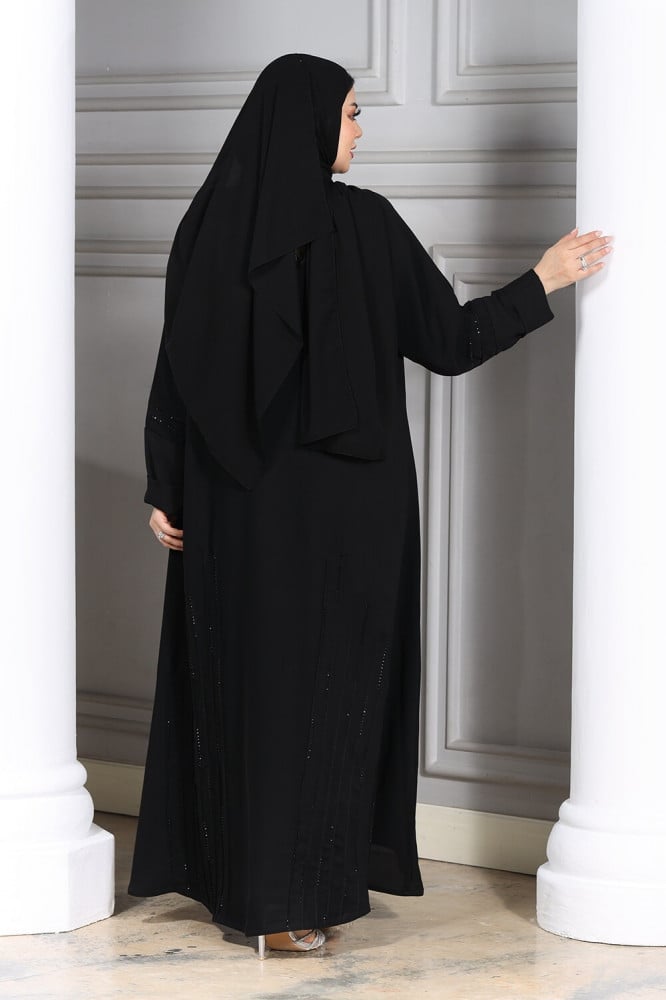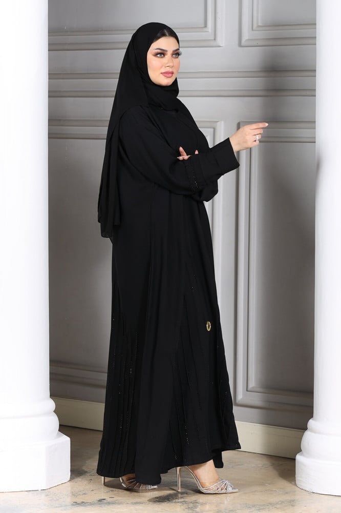 مواصفات عباية نص كلوش أسود بخطوط كريستالية رائعة بالأسفل والكم