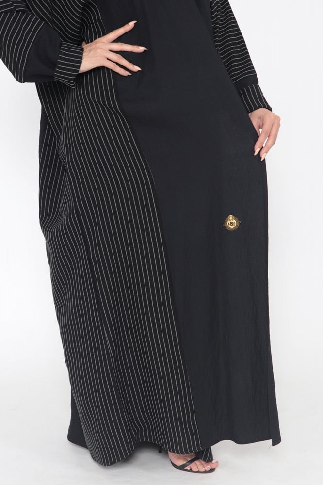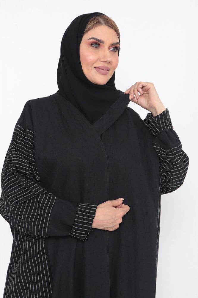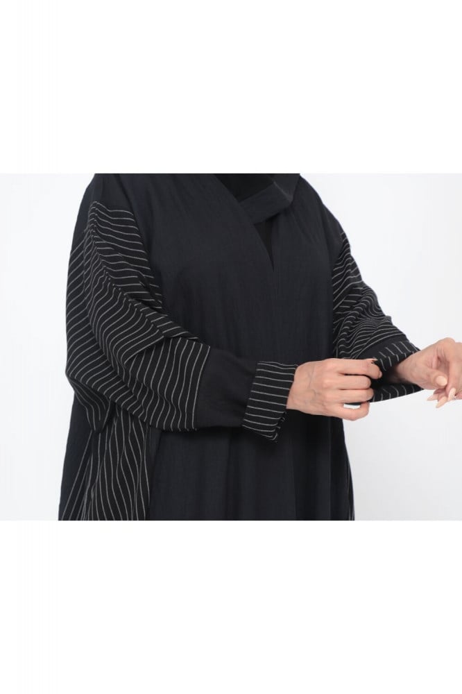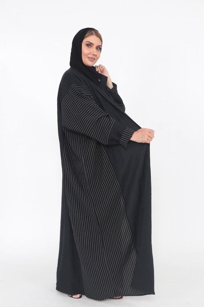 مواصفات عبايه فراشة سوداء بقماش مقلم لف