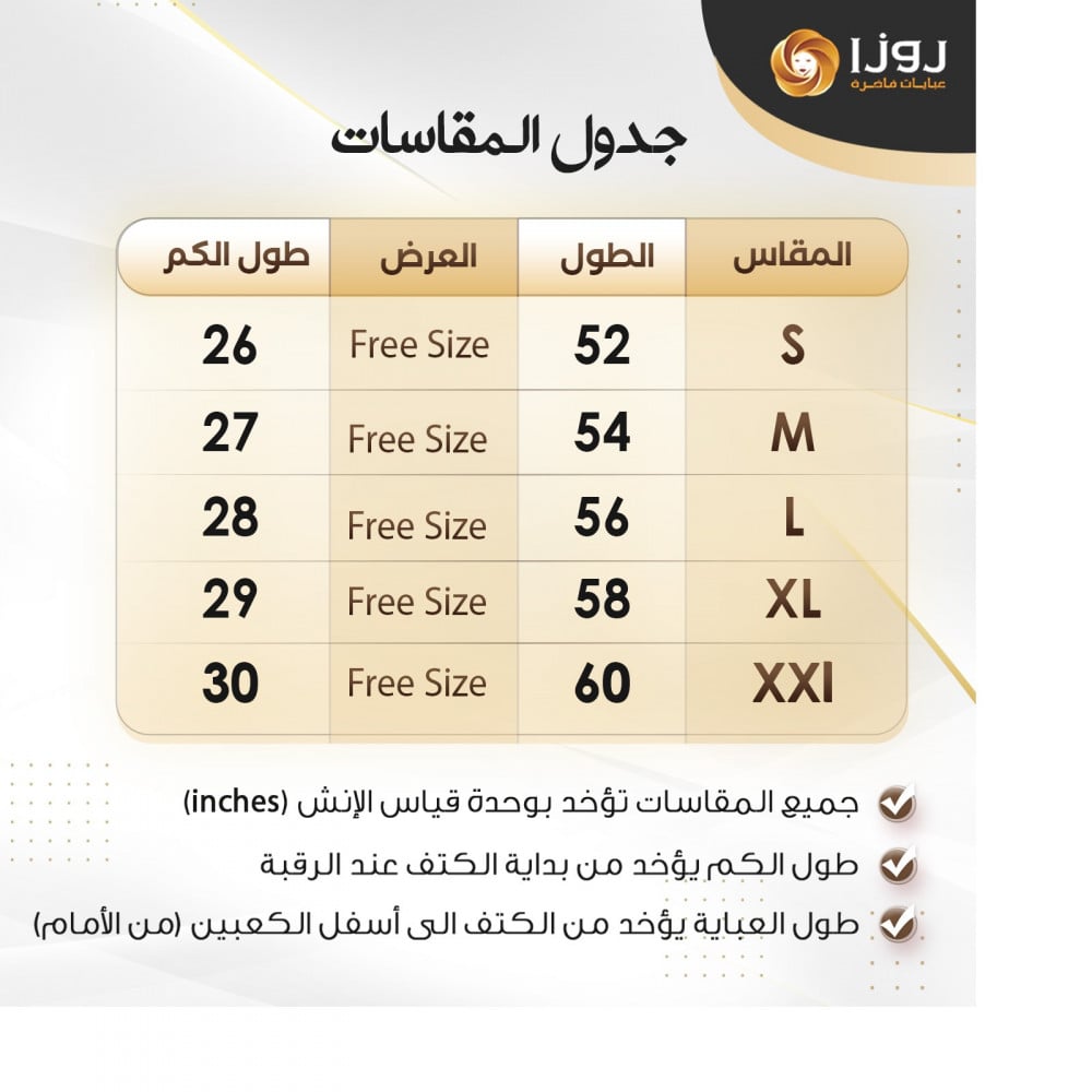 - تم تزويد العباية بتدخيلة مقلم في الجوانب، وهو ما أضاف لمسة مميزة وفريدة من نوعها للعباية.
