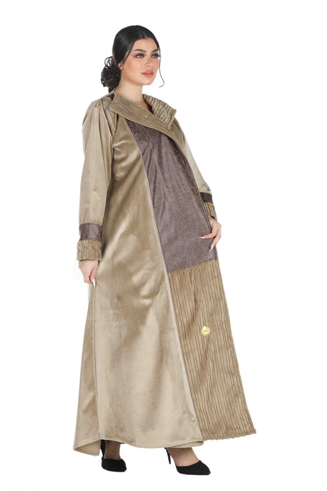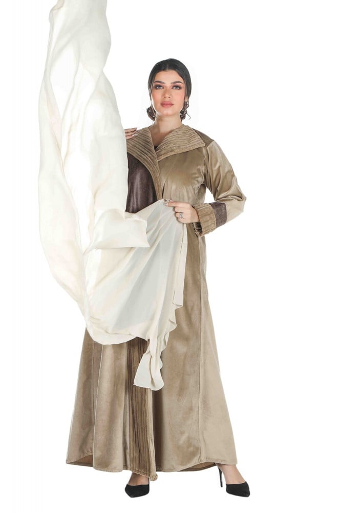 تمتعي بالراحة والأناقة في آن واحد مع عباية لون بيج شتوي مصنوعة من قماش المخمل الناعم من خلال متجر روزا الذي يوفر أفضل العبايات الملونه بتصاميم عصريه وجذابه داخل المملكه العربيه السعوديه.