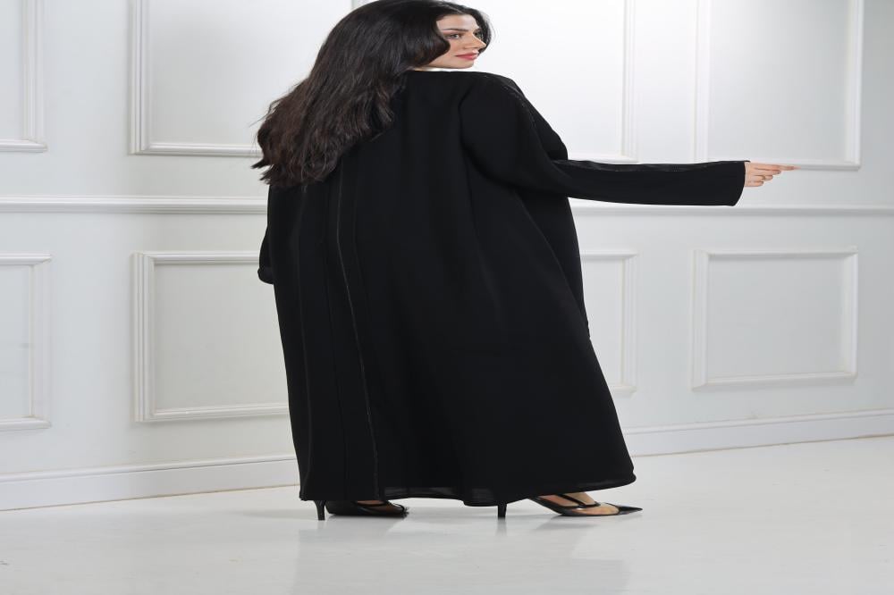 عباية ياقة نصف كلوش منسوجة من قماش كريب الفاخر مع طرحتها
