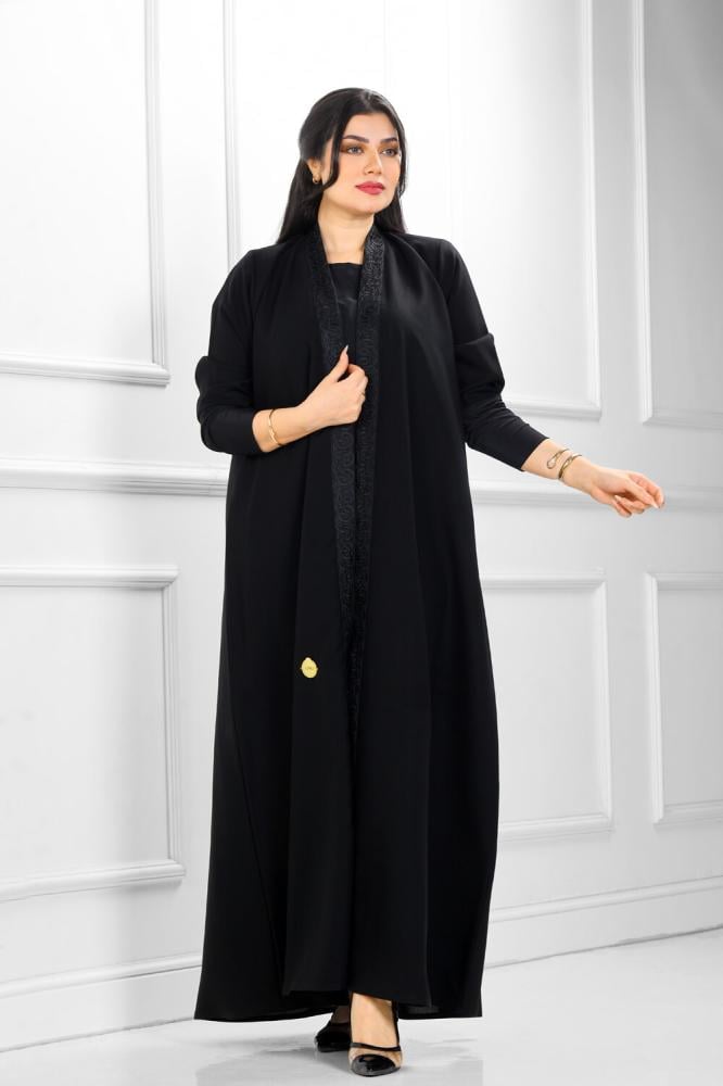 عباية دبل ياقة نصف كلوش منسوجة من قماش كريب الفاخر مع طرحتها