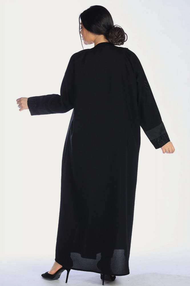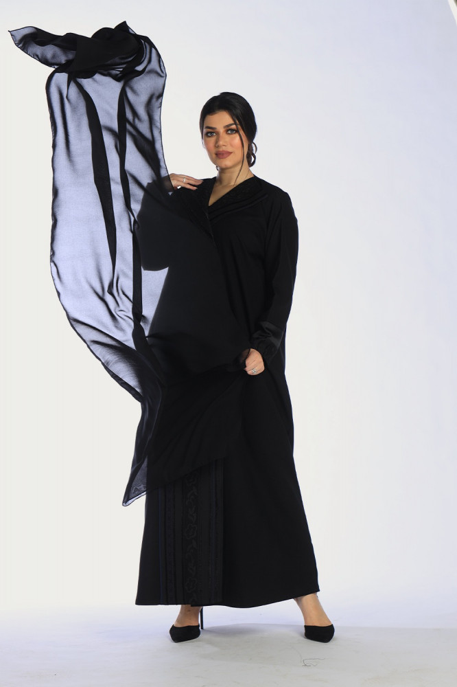 - العباية مصنوعة من قماش الكريب الفاخر، مما يمنحها مظهراً رائعاً وراحة عند الارتداء.