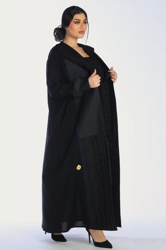 - تتميز العباية بتصميم فاخر يجمع بين جمال اللون الأسود وأناقة القلاب، مما يضفي لمسة أنثوية مميزة.